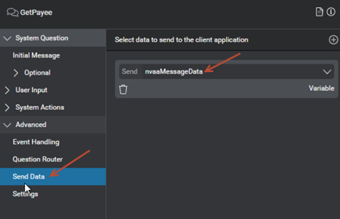 nvaaMessageDataMix variable, described here: https://docs.nuance.com/mix/integration/ndep/plan-interaction/#information-to-send-to-ndep.