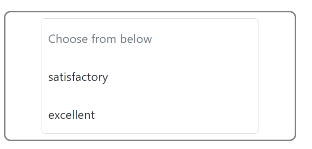 The list-selectable-group widget displays a list of text items with a header. The user can select one item.