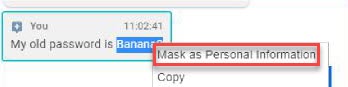 The data font changes color to indicate successful masking as PII. Also, this Data Masking is displayed in the Engagement transcript.