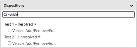 When an agent searches for the term “vehicle” all dispositions that contain “vehicle” display in the window.