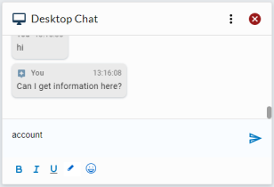 For Example: The agent types the word "account" into the Desktop Chat field.