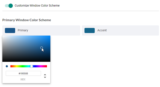 Customize Window Color Scheme: Slide the toggle to choose your own primary and accent colors.