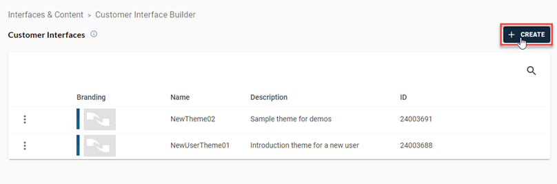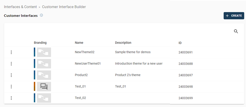 To edit, clone or delete an interface theme, click the vertical-ellipsis icon on the left of the theme.
