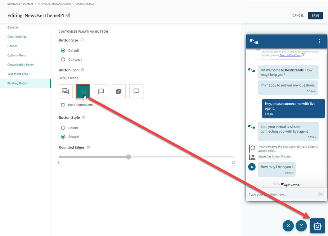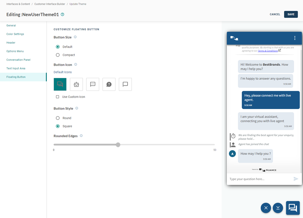 Virtual Assistant (VA) & Live Agent Avatar: Set the avatar that appears next to agent speech bubbles.