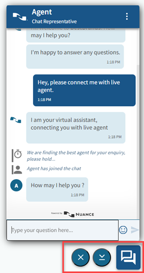Virtual Assistant (VA) & Live Agent Name: Enable to display the agent's name in the chat bubble. This is not necessary if the header has been configured to display the agent's name.