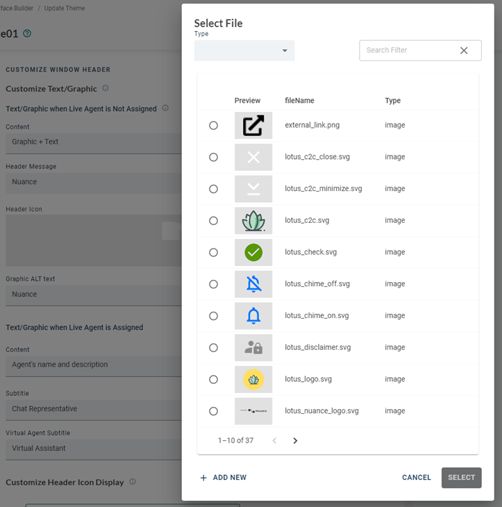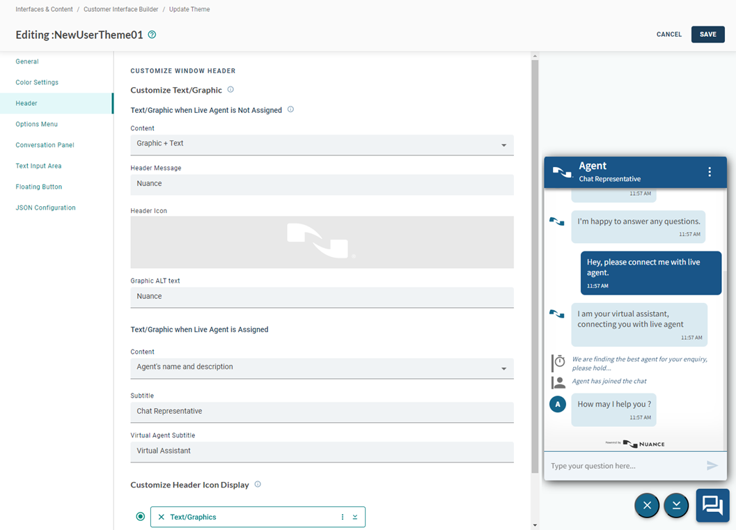 Text/Graphic when Live Agent is Assigned: Defines what appears in the header during an active engagement.