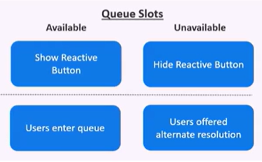 | 1.2% | Allow queuing until 120% of max-allowable slots are filled. If 120% of slots are filed, then do not allow additional customers into the queue. |
