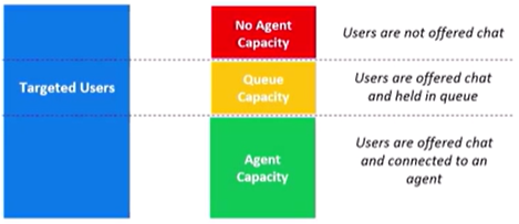 | 0.8% | Do not allow queuing, and do not allow more than 80% of max-allowable slots to be filled. | If there are 10 agents in an agent group, and each agent is assigned to a maximum of 2 chats, then if the agent group is conducting 16 simultaneous chats, do not show an Available button, which would allow additional chats. |
