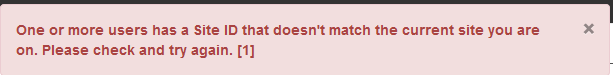 SiteID – The site ID of each user account must match the site ID where the CSV file is uploaded.