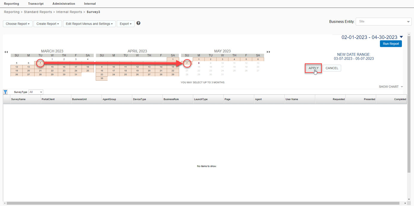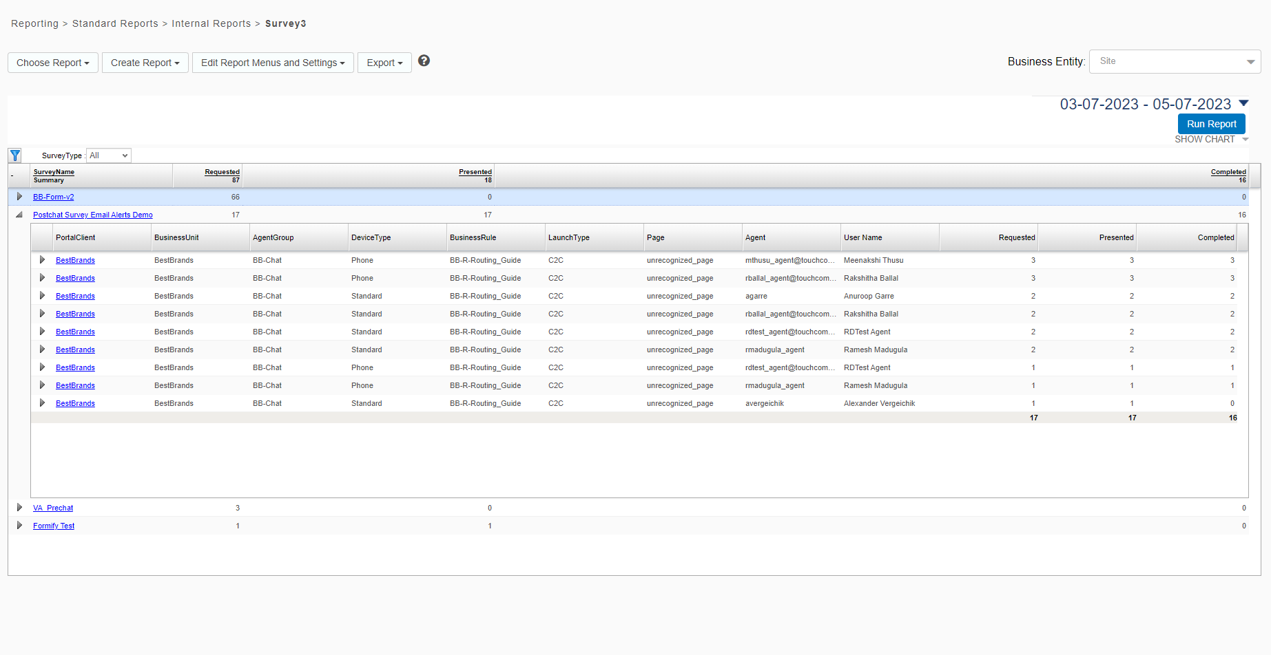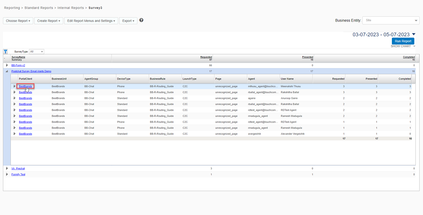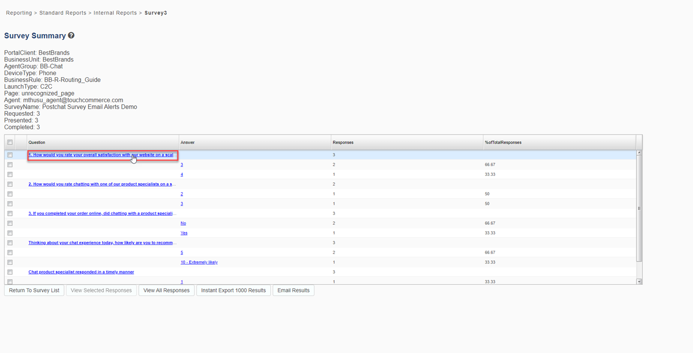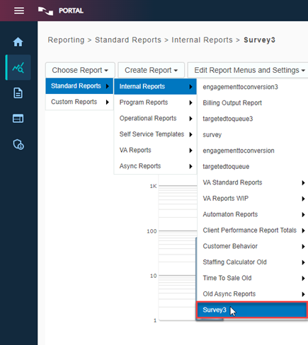 Select Choose Report > Standard Reports > Internal Reports > Survey3.