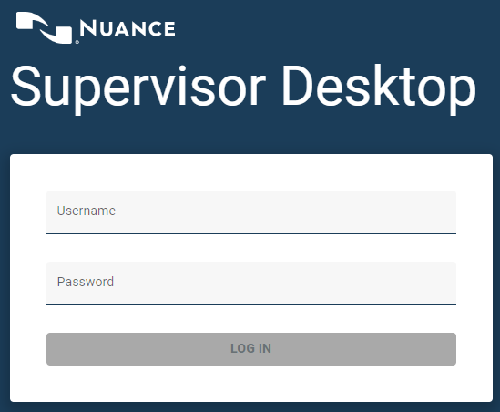 Talk to your digital program manager or customer success manager at Nuance to obtain your dedicated URL and account credentials to log into Supervisor Desktop. Please save the URL as a favorite or bookmark on your browser.