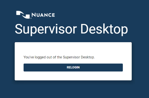 When Single-sign-on (SSO) users log out of Supervisor Desktop, they will be re-directed to a page showing a Relogin button, providing easy access to log back in using SSO: