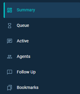 There are six Data tabs: Summary, Queue, Active, Agents, Follow Up, and Bookmarks.