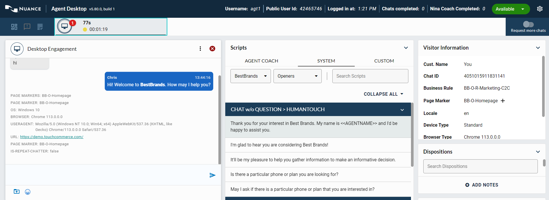 Agents have the ability to customize their layout of Agent Desktop and have their layouts persist across login sessions. Agents must either save or update a custom layout for it to be applied to a new engagement.