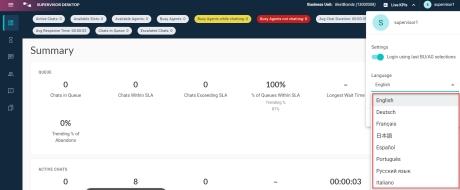 The Supervisor Desktop user interface can be displayed into several languages. You can display the user interface text in the following languages: