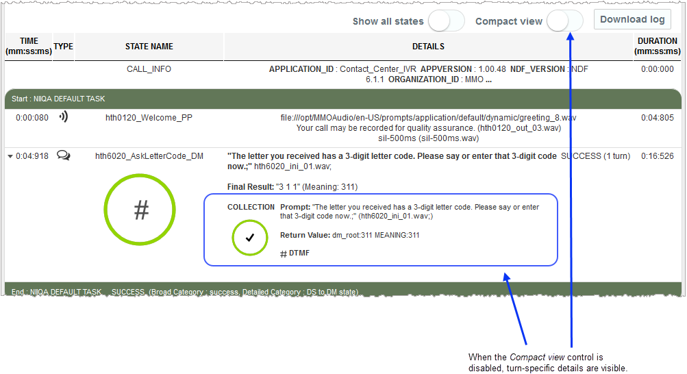 To collapse an individual Dialog Module state, toggle the Expand / Collapse arrow until the playback controls are no longer displayed for that state.