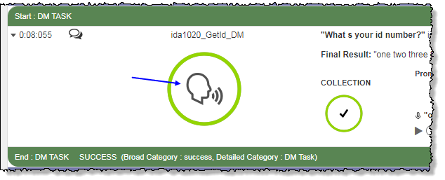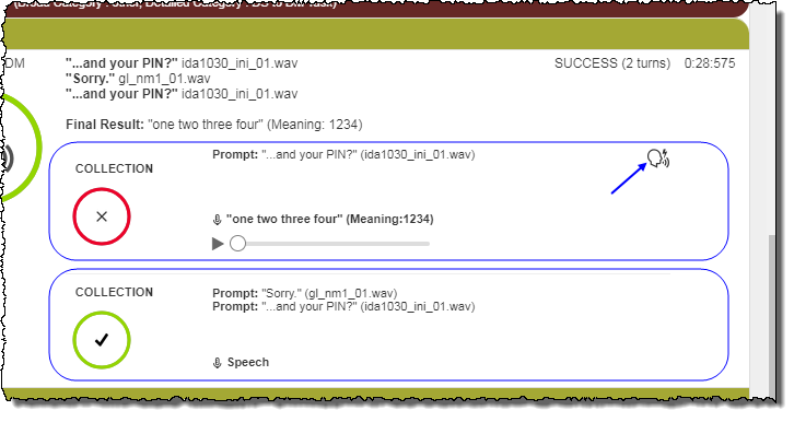 Playback control for an individual collection attempt's caller utterance. By clicking this symbol, you can hear what the caller said in this attempt.