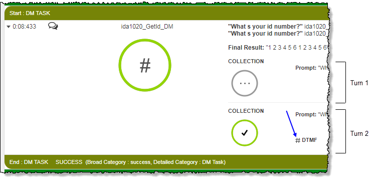 Turn-specific information, immediately preceding the recognized DTMF and meaning (Call View) Input mode (APPLICATION and MERGED tabs of Call View) |