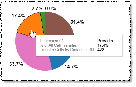This chart visualizes the breakdown of total transfers by the Dimension 1 value. The pie chart answers the question: What percentage of transfers came from callers with a given Dimension 1 value?