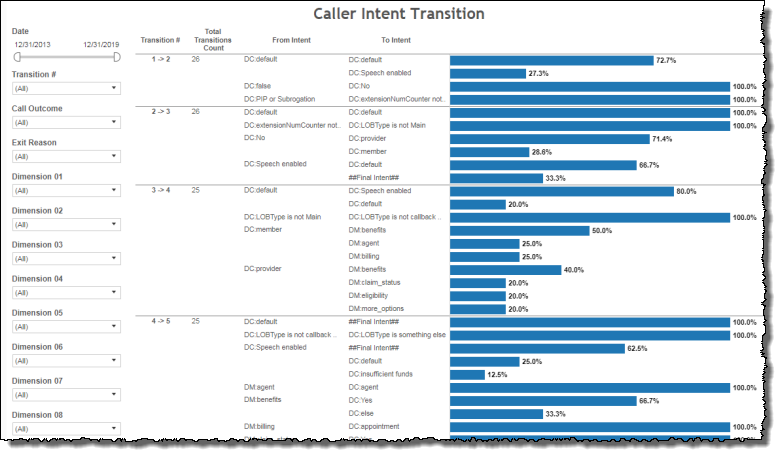 This report captures metrics about calls in which the original caller intent transitions into one or more other intents.