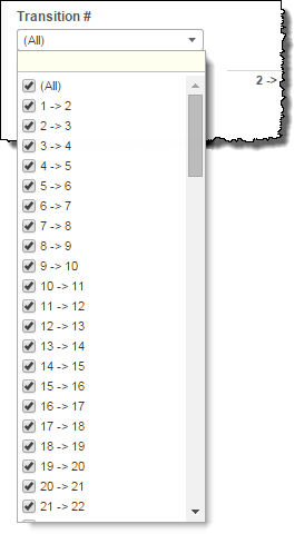 - Select only one transition by first clearing the All checkbox, and then selecting the name of the transition whose data you would like to see visualized.