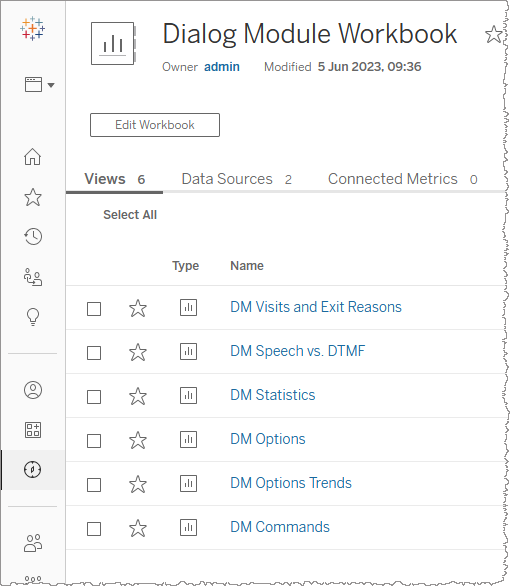 Dialog Module reports give insight into the performance of the interactive voice response system’s Dialog Module components. The Dialog Module Workbook page lists all available Dialog Module reports.
