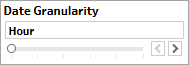 The Date Granularity filter allows you to adjust the reported data granularity described by the trend lines. Drag the slider horizontally to adjust the granularity of reported data. Alternatively, you can use the left