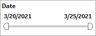 The Date filter is a slider with two moveable sides. By narrowing the date range, you display only data falling within the range.