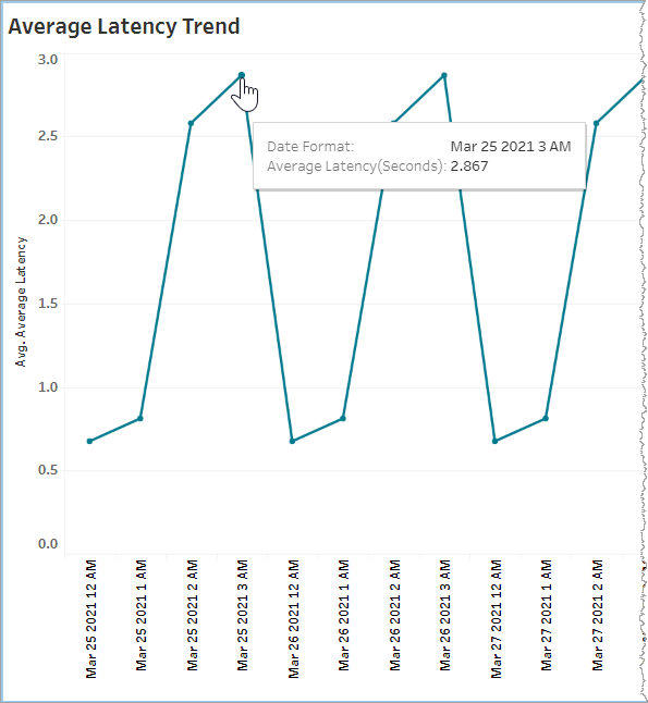This graph plots the change over time in the average latency for consecutive blocks of time, each with a duration defined by time granularity (Date Granularity slider).