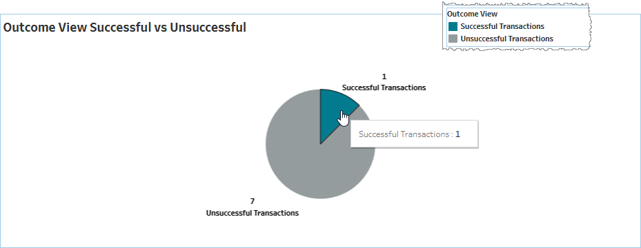 This donut chart visualizes the proportional distribution of transaction outcomes, broadly split into successful and unsuccessful categories. Mouse over any part of the chart for a tooltip with relevant information.