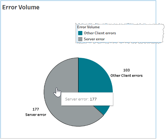 This donut chart visualizes the proportional distribution of error volume, broadly split out into the raw counts of client and server errors respectively. Mouse over any part of the chart for a tooltip with relevant information.