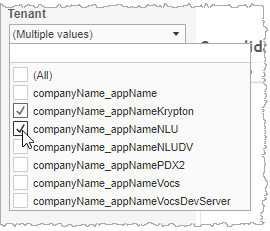 By choosing one or more tenants from the list, you refine your displayed data-set by including data from only those tenants matching the selection. The visualizations automatically reflect the information complying with the tenant selection.