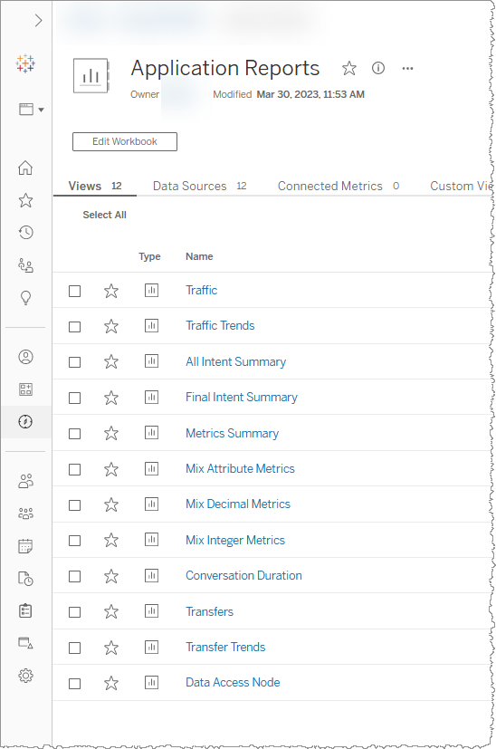 The views in the Application Reports workbook provide visualizations of select key performance metrics.