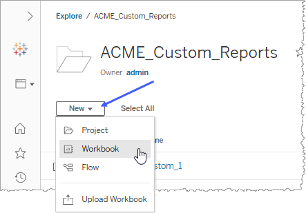 In Tableau, at the Site level, select the project and then drill down into the workbook containing the standard report you would like to use as a template.