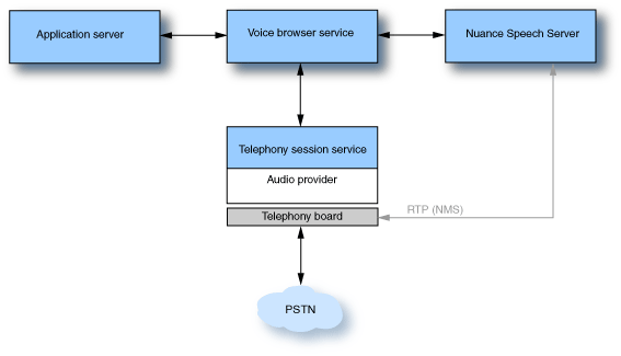 - With the NMS audio provider, audio (RTP) is passed between the Speech Server and the NMS board.