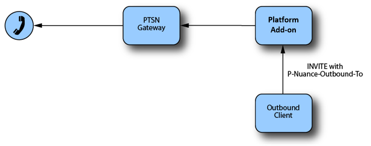 When you initiate an outbound call, your outbound client first sends an INVITE request to Voice Platform. This request includes a special P-Nuance-Outbound-To header that specifies the recipient of the call: