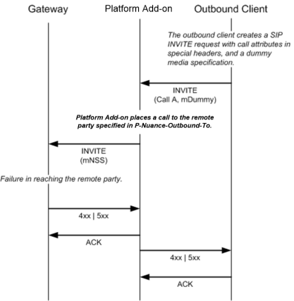 - Failure: If a problem occurs while the outbound call is being established, Voice Platform sends a failure response to the client application.