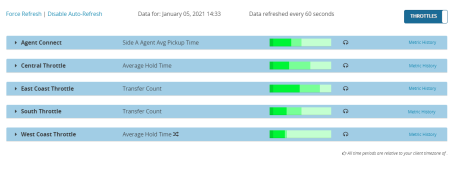 - Click the Campaigns toggle to switch to the Throttles view. This displays a list of throttles. Here's an example: