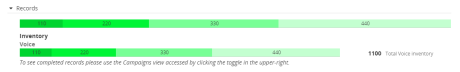Some records in inventory may have already been sent, but are scheduled to send again. The darker the shade of green, the sooner they are scheduled for sending. The size of each colored band is proportional to the percentage of loaded records in that status.