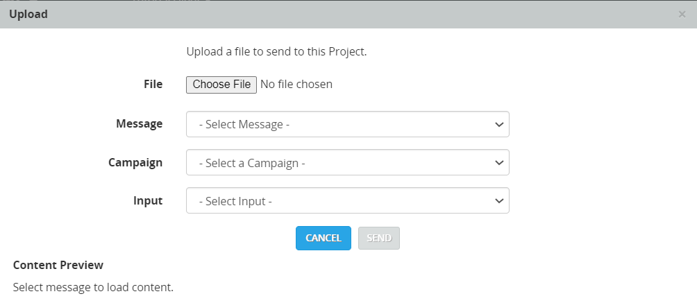 - For Message, select the message you want to use. After you select a message, a preview of the message's content is displayed in the Upload dialog box. Here's an example of a Content Preview for a voice message.
