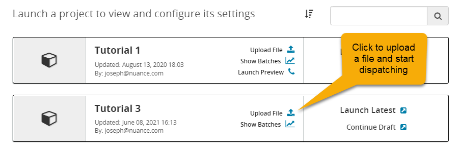 - Click the Projects tab on the header bar to display the list of projects. Find the project you want to use for messaging.