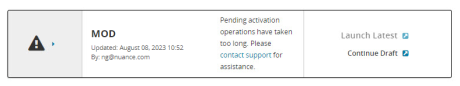 - Open the project, by clicking either Launch Latest or Continue Draft, as described in Open a project for editing (MOD projects only), and make any changes to the project as needed.