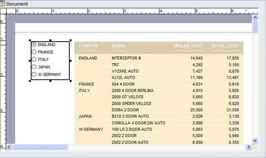 Insert active form controls into a compound document to act as filters on the reports of the document. You can also cascade (chain) controls to populate based on the selections of the previous controls.