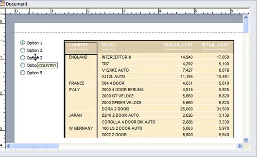 Tip: When an active form control is added to the canvas, the compound document is locked in an active output format. You cannot change out of active report, active Flash, or active PDF format if controls are present on the canvas. To switch to a non-active output format, all controls must be removed. |