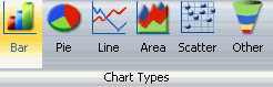 The Chart Types group is accessible from the Format tab on the Control Panel in Query Design or Interactive View for selecting chart types.