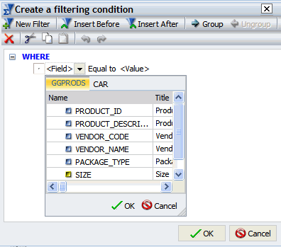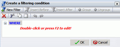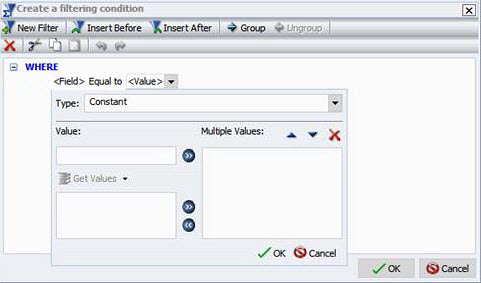The simple filter dialog allows you to create or modify WHERE statements. (WHERE statements enable you to select only the data that you want and to exclude all unwanted data.)