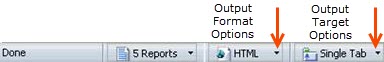 - When selecting the Reports button, a pop-up menu opens, with options for selecting any of the open reports.