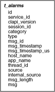 All alarm data is stored using a single table, t_alarms: