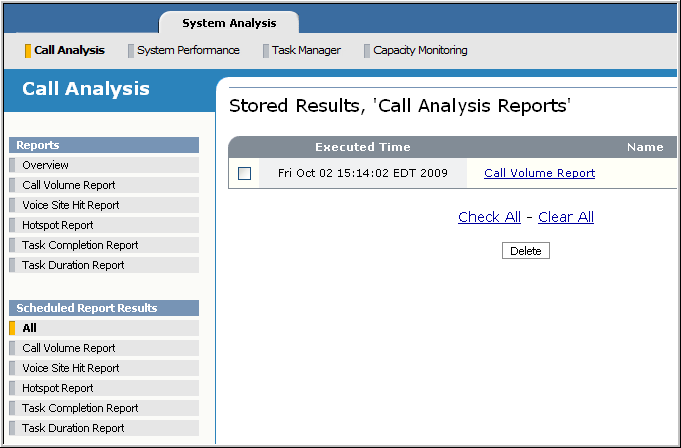 You can also view and delete report results in chronological order using the Task History page (Task Manager→Task History).