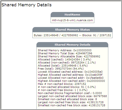 - Shared Memory Allocatable Size—Amount of memory actually reserved for resource sharing. It is smaller that the total since the Recognizer sets aside a small region to manage shared memory.